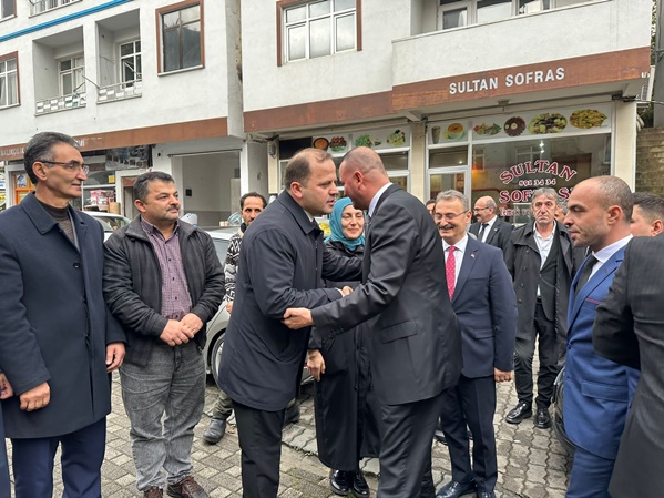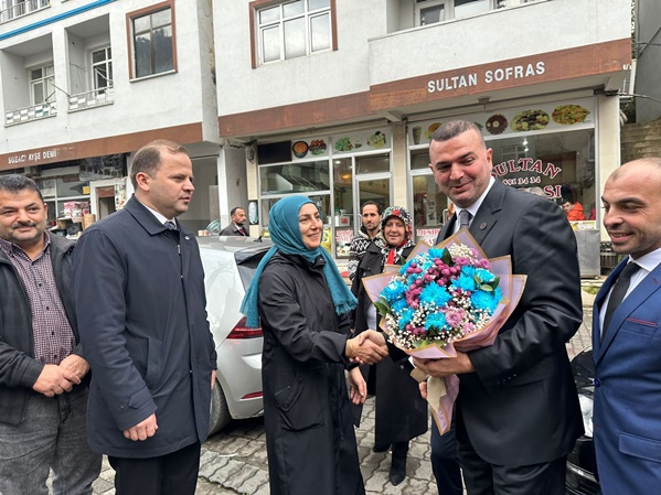 AK Parti İlçe Teşkilatı Ziyaret Edildi; Şalpazarı AK Parti İlçe Başkanı Zeki Çabuk AK Partililer ve yöneticilerin hazır bulunduğu parti binası önünden Başkan Çabuk İl Başkanı Tolgay Sivrikaya’yı çiçekle karşıladı.