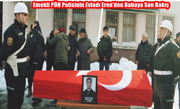 Merhum emekli Polis memurunun oğlu Eren babasının cenaze merasimine katılarak son defa baktı basının tabutuna. Cenazeye katılım sağlayan dostlarının ani ölüm haberiyle çok üzüldükleri yüzlerinden okunuyordu.