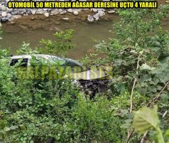 OTOMOBİL 50 METREDEN AĞASAR DERESİNE UÇTU 4 YARALI