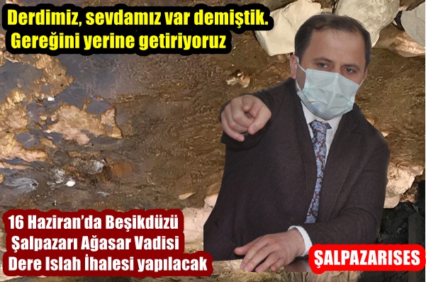 “Derdimiz, sevdamız var demiştik. Gereğini yerine getiriyoruz” /AK Parti Şalpazarı İlçe Başkanı Zeki Çabuk, Beşikdüzü-Şalpazarı Ağasar Vadisi 5. Kısım Dere Islahı İnşaatı ihalesinin 16 Haziran 2021 ta...