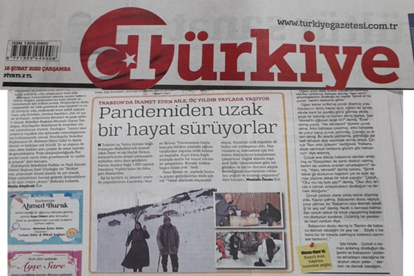 Tüm dünyayı etkisi altına alan korona virüs ortaya çıkmadan öncede yaylada yaşadıklarını belirten Birinci ailesi Tonya’daki evlerine şimdilik dönmeyi düşünmediklerini doğa ile iç içe olmanın keyfini yaşadıklarını ifade etti. Eşi ile birlikte üç yıldır bütün gün yaylada yaşadıklarını kaydeden Huriye Birinci, “Tonya’da oturuyoruz yaz dönemlerinde yaylaya çıkıyoruz. Tonya’da kaldığımız yerde arazi dar olduğundan buraya da oğlum ev yapınca eşim Ömer ile burada kalmaya başladık. Kışın karla kaplı yaylada mutlu bir yaşam sürmeye çalışıyoruz. Yaylada bizden başka kalan yok. Artık alıştık burada yaşamaya devam ediyoruz” dedi.