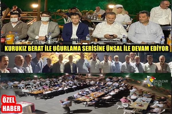 Şalpazarı İlçesinden yeni görev yeri olan Adıyaman’in Sincik İlçesine uğurlaması İçin Şalpazarı yeni hizmet binası önünde bulunan açık alana kurulan toplu yemeklerin verilmesi için düzenleme yapılmış olan alana Şalpazarı belediye başkanı Refik Kurukız’ın Büyükliman İlçe Belediye Başkanları, Kaymakam Ünsal’ın okul Arkadaşı olan Arsin Kaymakamı ve Büyükliman havzasında görev yapan Kaymakamlar, İlçe içi ve ilçe dışı sivil toplum üyeleri, İlçede ulunan mahalle muhtarları, Şalpazarı’nda bulunan tüm Siyasi İlçe Başkanlarının yanı Sıra İlçemiz genelinden olup ve yurdun değişik yerlerinde görev yapan değerlerimiz bu Kaymakam uğurlama yemeğinde bir araya geldiler.