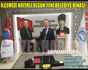 Modern bir görünümlü olarak hizmete giren Belediye binamız İlçemize hayırlı olsun çünkü 1968 yılında yapılan binamızda bu güne kadar hizmet verdik.Orada hizmet veren rahmetli olmuş ya da sağ olan tüm başkanlarımıza teşekkür ediyoruz.Şalpazarı için kim bir çivi çakıyorsa ondan Allah razı olsun.İlk basın konuşmalarımda vardır.