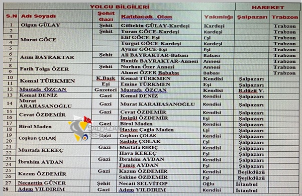 *21.00 Sabiha Gökçen Trabzon’a Uğurlama