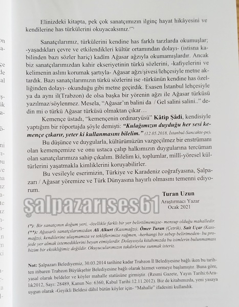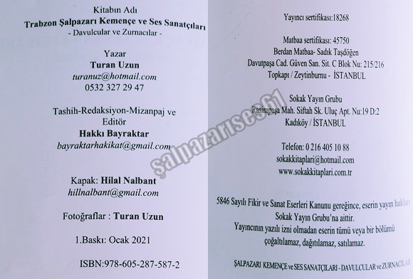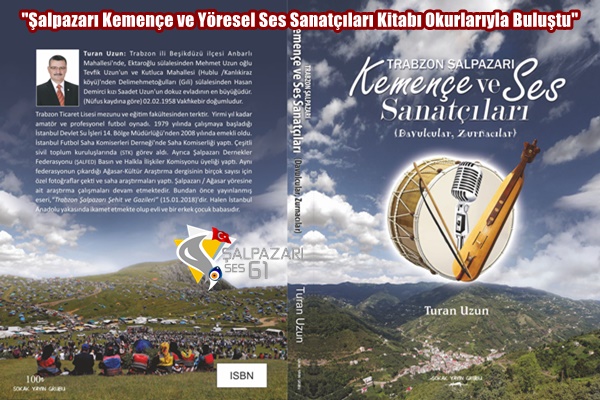 Trabzon Büyükliman Bölgesinde bulunan Şalpazarı İlçesinin Kemençe ve Ses Sanatçıları olarak 10 yıl boyunca Trabzon, İstanbul, Samsun, Kocaeli, Adapazarı, illerine bir zat giderek buralarda bulunan Kemençe ve ses sanatçılarıyla yaptığı söyleşileri kayıt altına almasıyla beraber ”Şalpazarı Kemençe ve Yöresel Ses Sanatçıları” kitabını tamamladığını belirten araştırmacı yazar Turan Uzun 260 sayfalık bu eserde 95 kemençe sanatçısı, 29 Ses sanatçısı, 6 Davulcu, 5 Zurnacı, 6 Şiir ve söz yazarının bulunduğu bu eser okuyucularıyla buluşturdu.