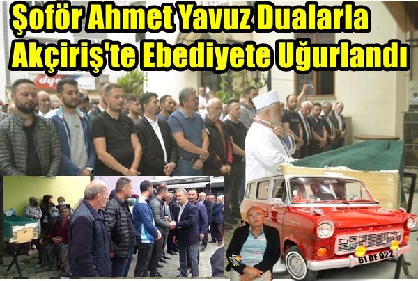 Merhum Ahmet Yavuz’un cenaze merasimi 11 Temmuz Pazartesi günü Şalpazarı Merkez Cami avlusunda öğle namazına müteakip kılınacak cenaze namazının ardından Akçiriş Asri mezarlığında ebediyete uğurlandı. Şalpazarı İlçemiz emektar Şoförlerinden sayılan Ahmet Yavuz yakalanmış olduğu amansız hastalığın pençesinden Trabzon da özel bir hastanedeki 15 gülük yoğun bakım mücadelesine yenik düşmüştü.