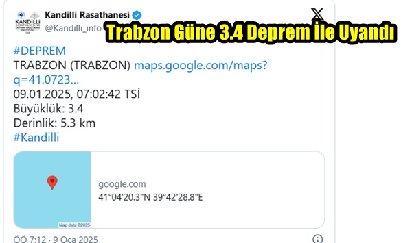 Son dakika haberi… Kandilli Rasathanesi’nden alınan verilere göre Trabzon’da 3.4 büyüklüğünde bir deprem meydana geldi.